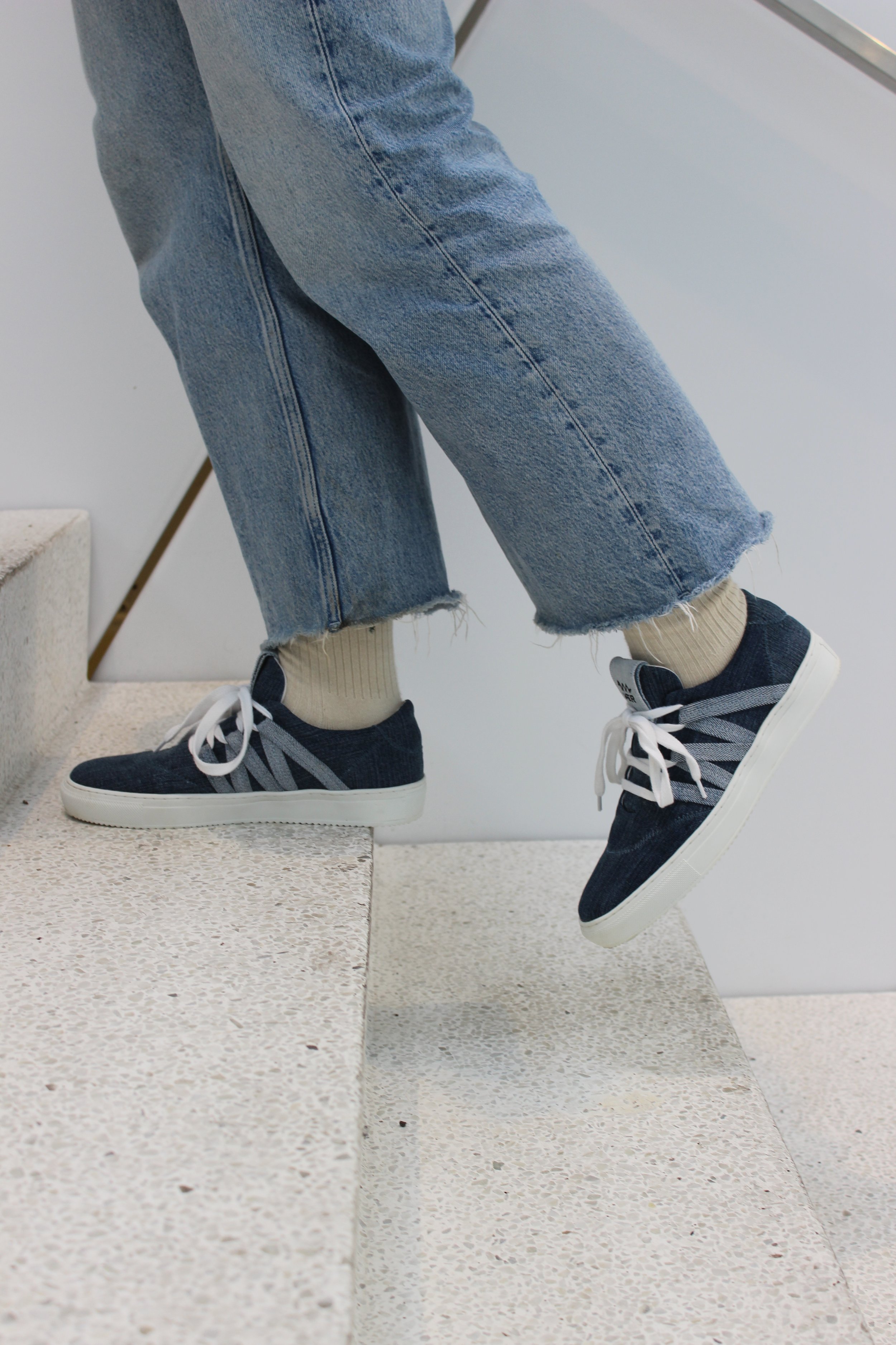 R- we advocate for the 3 Rs: reduce/reuse/recycle. By reusing textiles to make our sneakers, we reduce our environmental footprint and that of our customers. We encourage our customers to take care of their sneakers - and when they after a long and happy life can’t be used anymore, we offer a take-back programme, where we recycle the sneakers into new soles.